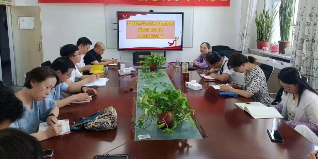 王春恋书记从时代背景、国家发展以及国际局势等方面深入浅出地阐述了习近平新时代中国特色社会主义思想的科学体系、核心要义、世界观和方法论。她通过回顾我国经济发展历史,讲解了高质量发展在推动经济建设不断向高级形态迈进过程中的形成过程,阐述了什么是高质量发展,我国的经济发展变化过程,以及未来高质量发展的国家战略方向。通过总结我国发展的变化过程,她指出高质量发展也是我们教学部和学校发展的必由之路,我们必须积极行动,积极参加到学校的改革发展进程中,一起向着高质量发展进军,为教学部和学校的发展作出贡献。