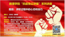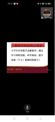 开展了6场“抗疫情云讲堂”系列讲座活动:大学生理财的逻辑基础、统计之道、量子计算、中行“原油宝事件”的分析与启示、数学建模简介、求职过程中的心态与技巧。讲座参与者广泛,每次讲座均有200人以上的师生参与。讲座营造了健康向上的学习和防疫氛围,让学生树立了生活自信、学习自觉的信念,为全体学生送去了携手并进共度抗疫难关的关怀,让每一位河北地大数理学子感受到了师生一心、同舟共济的温暖和力量!