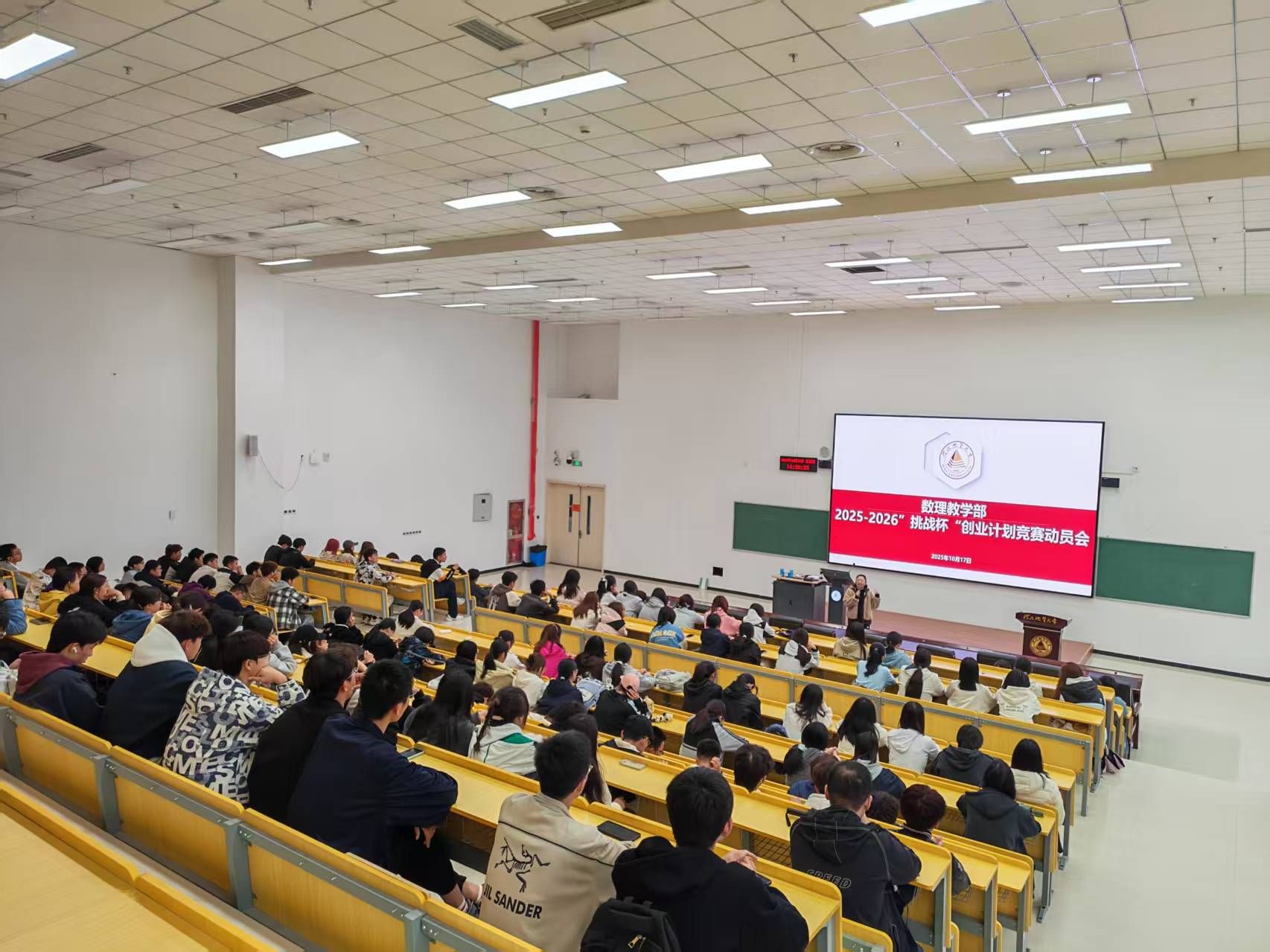 为积极响应学校关于开展2025-2026年“挑战杯”中国大学生创业计划竞赛动员会部署,激发数理学子创新创业热情,提升学生科技创新能力,10月17日,91麻豆 于教一109教室组织开展“挑战杯”中国大学生创业计划竞赛动员会,全体本科生、研究生积极参与。91麻豆 党委副书记张凝宁、信息与计算科学专业教研室副主任李亚宁、物理教研室教师张晗、高等数学教研室教师王永江及各年级辅导员出席活动。