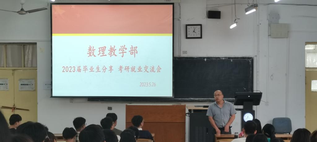 在本部教三102召开了2023届毕业生考研就业交流分享会,会议由教学部党委副书记董昌州主持,2020级辅导员张翘楚、2022级辅导员田晓以及各年级共百余名同学参加交流。