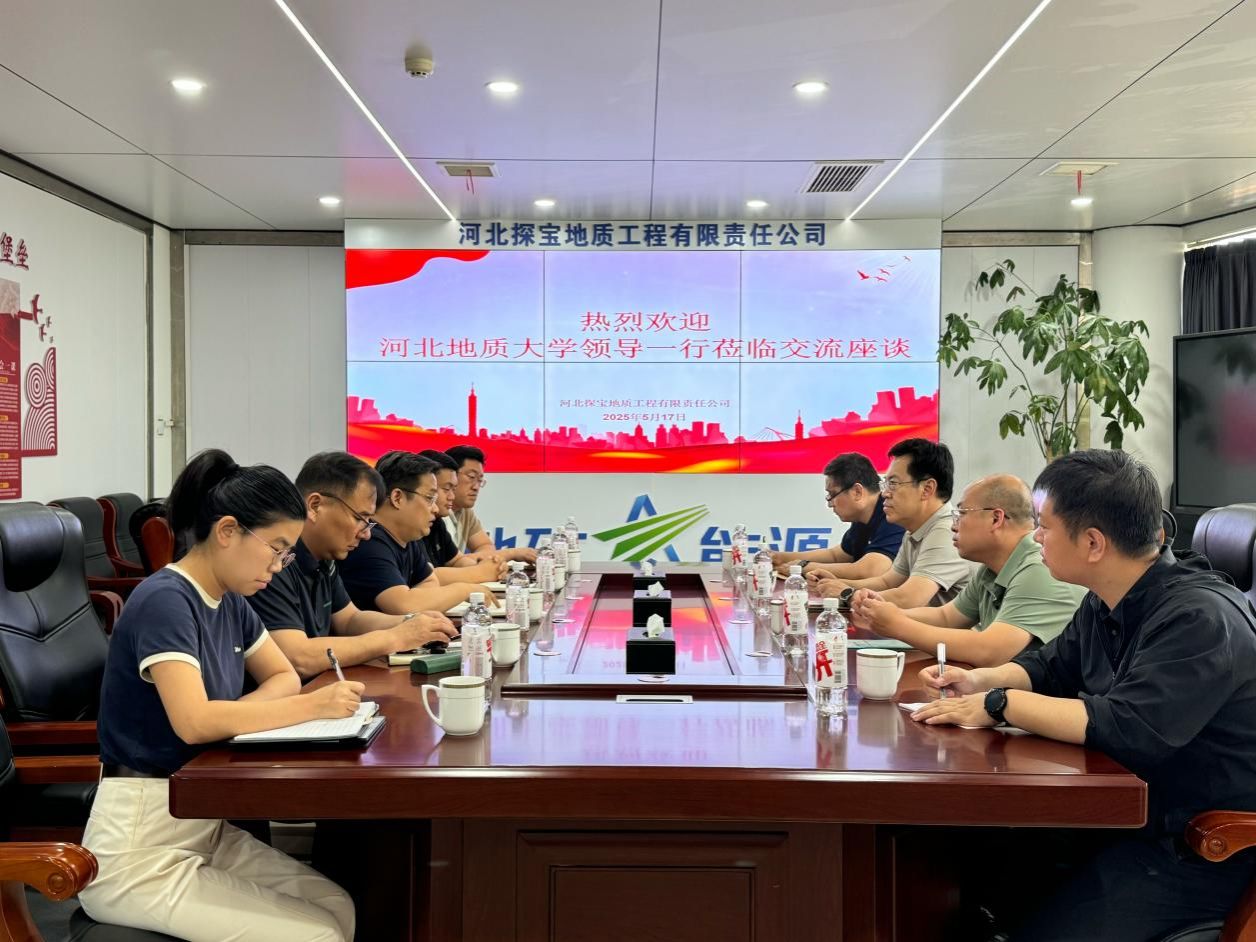 5月17日,为深入了解企业需求,副校长赵永强带队前往邯郸,开展校企深度合作交流活动。河北探宝地质工程有限责任公司总经理聂冀强及相关负责人热情接待了我校一行