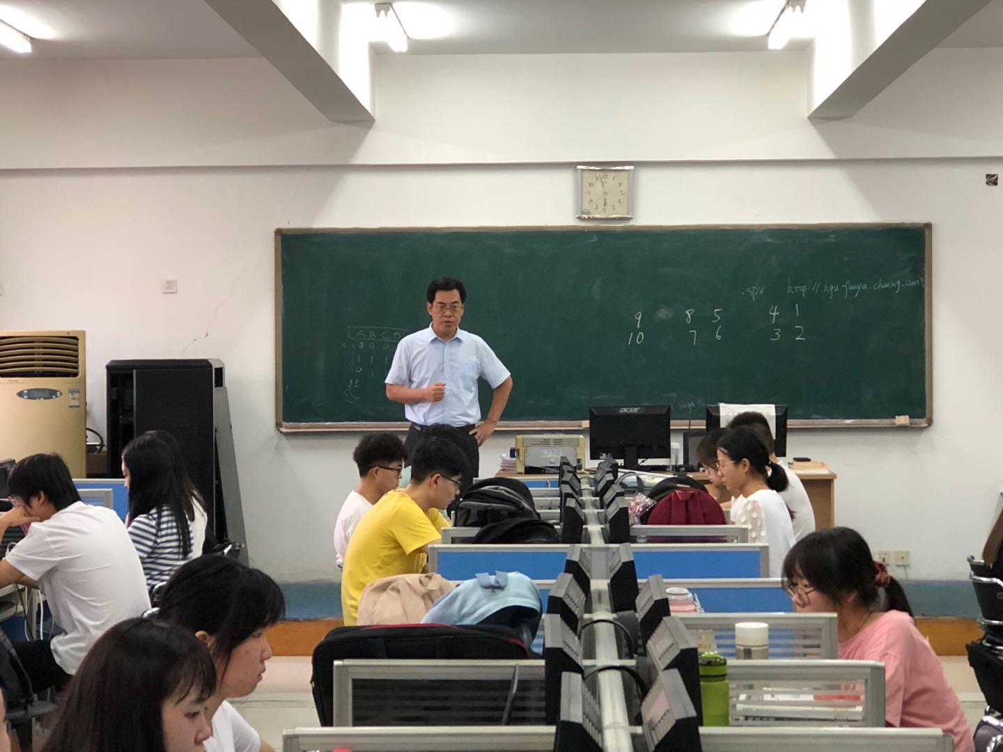 9月9日下午,副校长赵永强在数理教学部主任曹南斌的陪同下,来到实验楼507、508机房亲切慰问了正在这里代表我校参加2021年高教社杯全国大学生数学建模竞赛的学生。