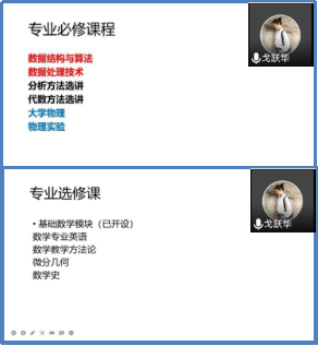 的老牌专业进行介绍,引起了学生们极大的关注。戈主任介绍了该专业的专业必修课程,专业选修课程,提到了数学偏重于基础知识,其核心课程为复变函数、泛函分析、实变函数、偏微分方程等学科,戈主任重点说明这些核心基础课程在学生以后的深造和深入研究中起着极有力的支撑作用。戈主任也介绍了该专业开设的大学物理和物理实验课程等其他课程。