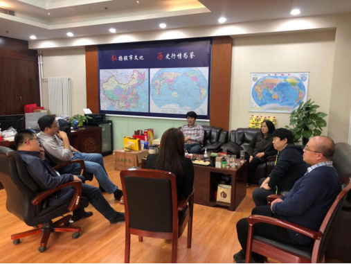 弘历集团副董事长梁威与教学部领导介绍各自发展概况及未来规划,探讨校企合作方式。