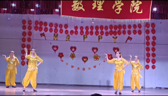 党委书记王春恋带领三位老师带来了舞蹈《天竺少女》,伴着熟悉的音乐节奏,老师们和着节拍舞动,赢来了学生们一阵又一阵的掌声。