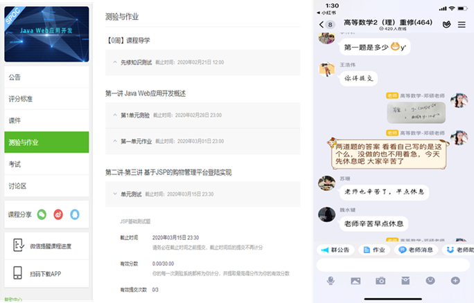 (2)教学平台的使用:学生们反映,通过对多门课程多个软件的效果对比,学生们比较认可“钉钉”平台,特别是钉钉直播,比QQ直播屏幕大,关键是可回放,方便学生反复观看。