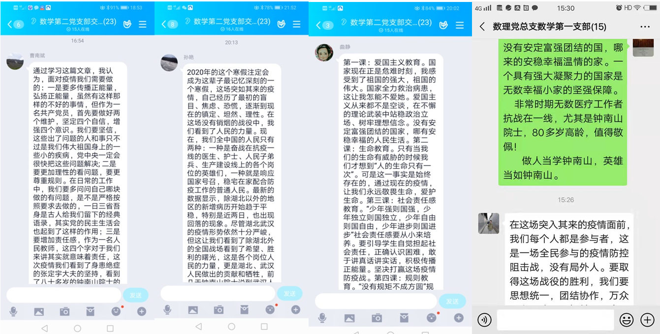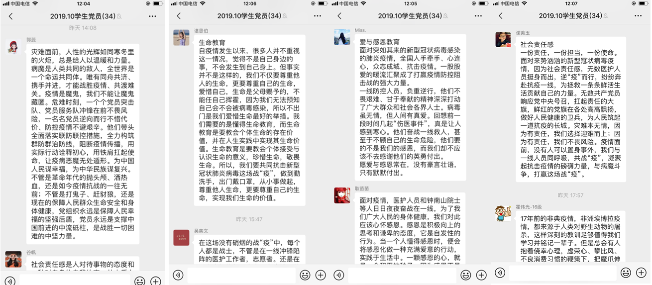 各党支部积极在线组织党员学习讨论,交流感受。针对这五堂思政课,师生党员静心思考,审视自身,积极畅谈这堂人生大课。