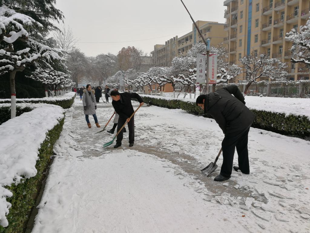 数理师生齐心协力同上阵 除冰扫雪确保责任区安全通畅