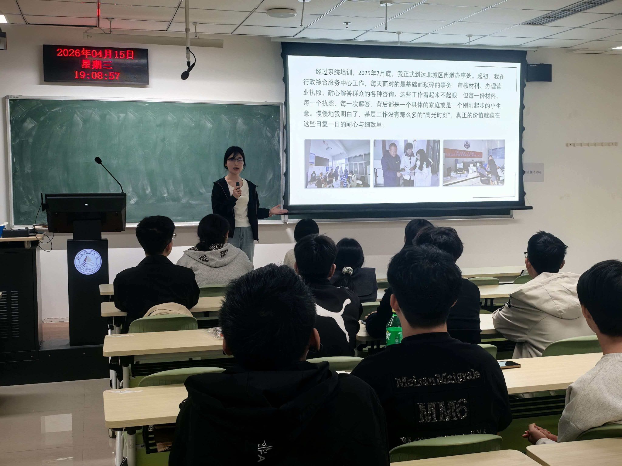 交流会上,吕鑫结合自身基层服务经历,向在场师生讲述了自己响应国家号召、投身西部计划的初心与坚守。受榜样精神感召,她毅然加入河北省西部计划乡村振兴计划,先后在行政综合服务中心、宣传部开展工作,承担材料审核、政策宣传、入户走访、安全排查、人居环境整治等任务。他在平凡岗位上踏实做事,用耐心与细致服务基层群众,以实际行动践行“到西部去、到基层去、到祖国最需要的地方去”的青春誓言。